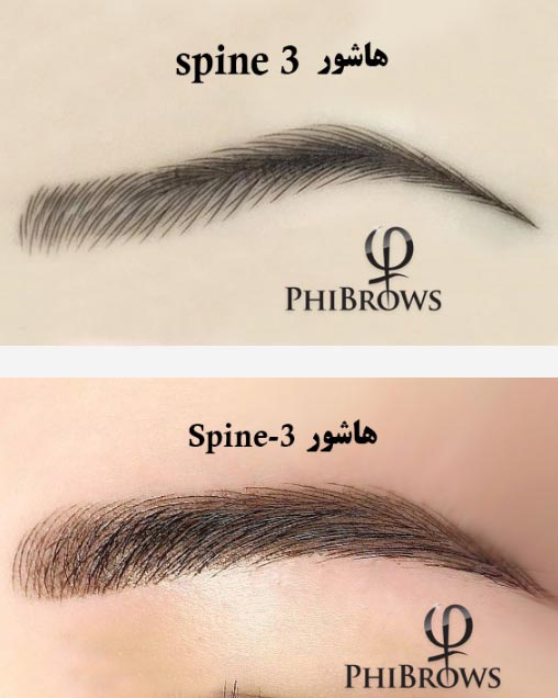 Spine _6 این مدل ابرو به ابروی کلاسیک معروف است که خط میان ان از نقطه ی انتهایی سر ابرو تا نقطه ی ۶ ابرو کشیده میشود.